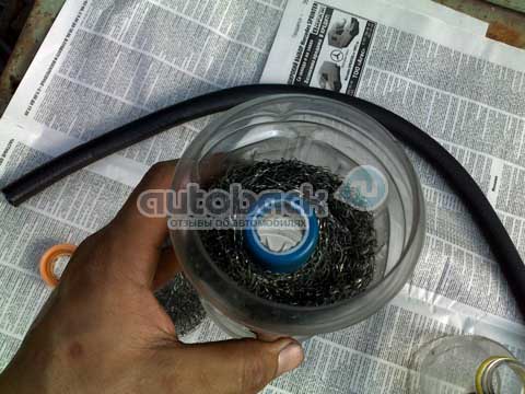 приличной цене, а можно сделать самому. На последнем, то есть изготовлении маслоуловителя (маслоуловителя картерных газов) мы подробно и остановися.
