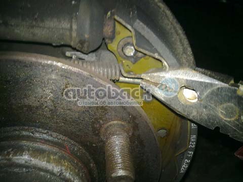 Вот таким нехитрым образом мы осуществили разборку тормозного механизма ниссан альмера классик. Сборка же тормозного механизма проводится в порядке, обратном снятию. При установке верхней стяжной пружины следует быть максимально внимательным, так как пружина, соскочив, может нанести травму.