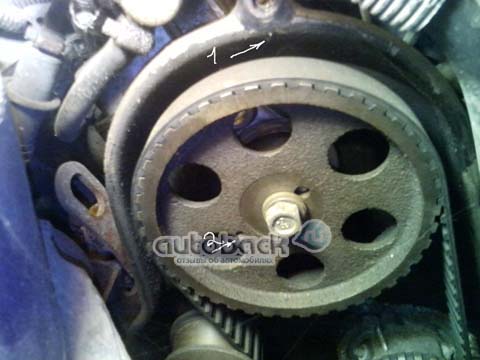 Это намного облегчит установку нового ремня. Теперь, после установки меток, можно открутить нижний шкив и снять натяжной ролик рис 7.